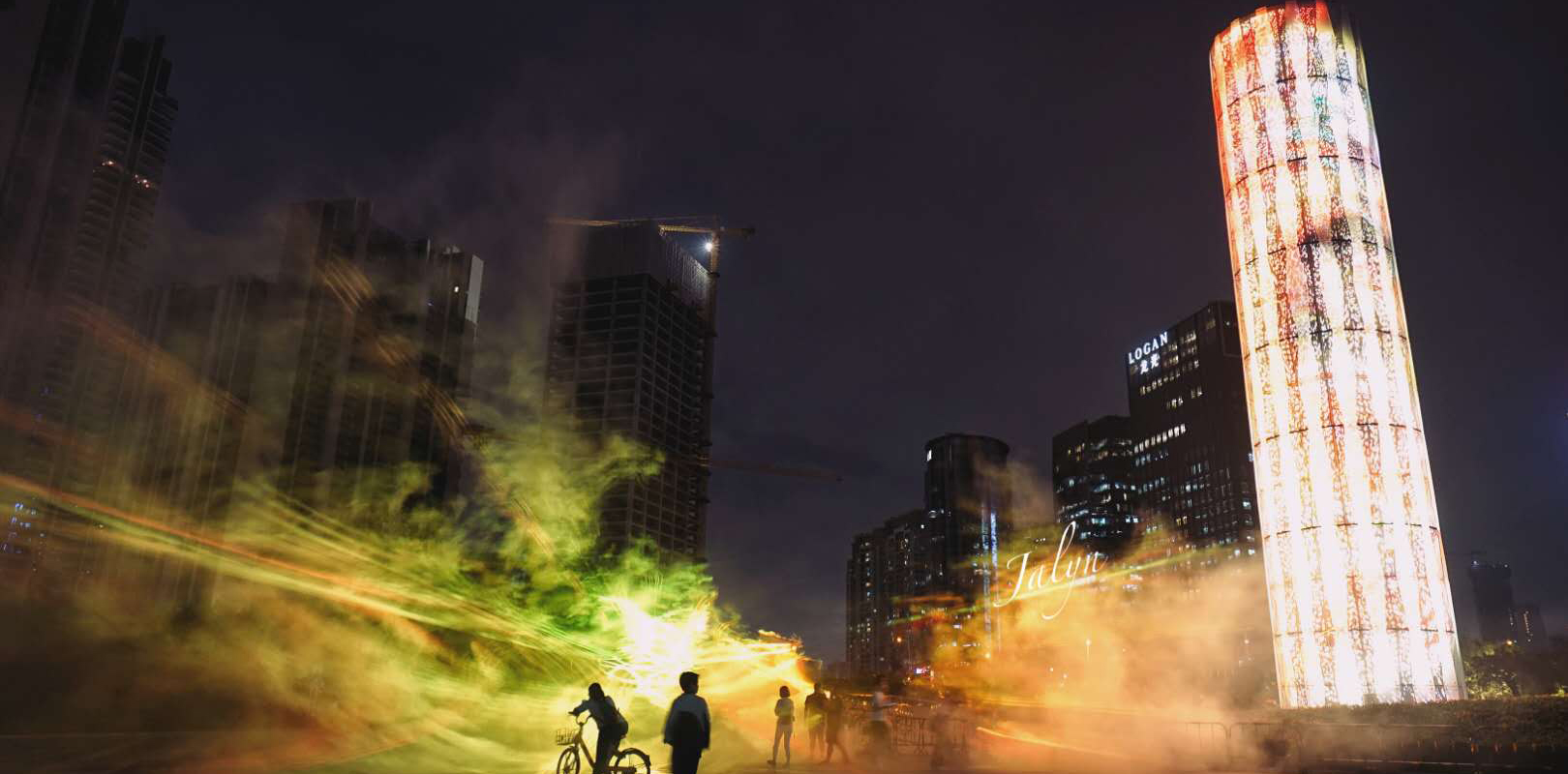 海濱廣場中的“光明柱”實現了燈光的開放交互功能,該項目樹立了海濱廣場夜景新地標,運用近30萬顆LED像素光源,以高達30米的鏤空結構和磨砂玻璃建筑形成巨大的環形媒體面,是國內首個燈光+大數據+物聯網的結合。