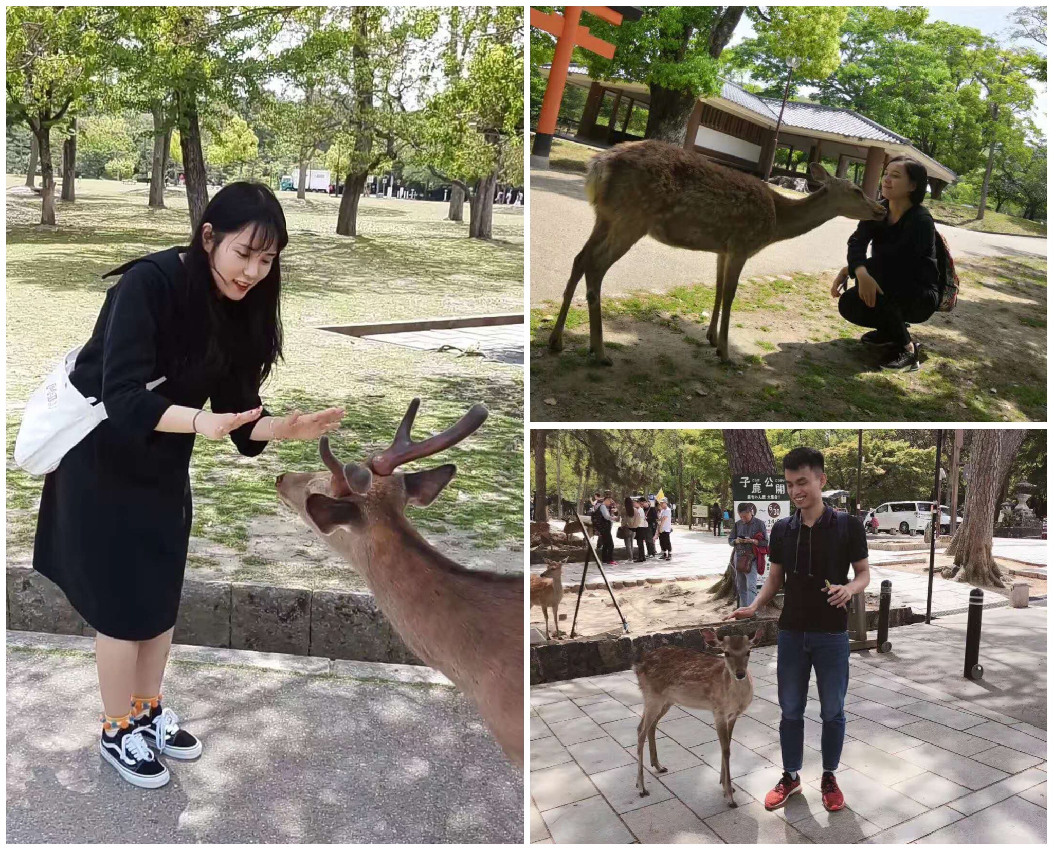 除了奈良公園,在若草山、東大寺等很多景區也遍布著鹿的痕跡。洲明的小伙伴們這次在奈良與小鹿們也親密接觸了一回!這些小可愛見到游人還會鞠躬的哦,是不是很懂禮貌~但其實是為了向游客要鹿餅來吃呢![]()