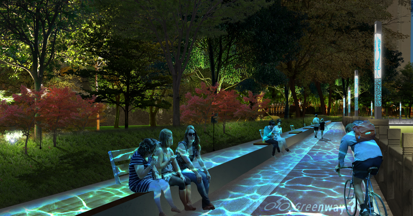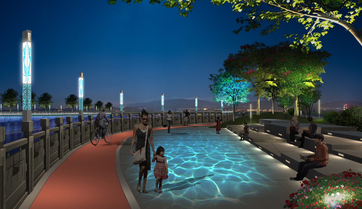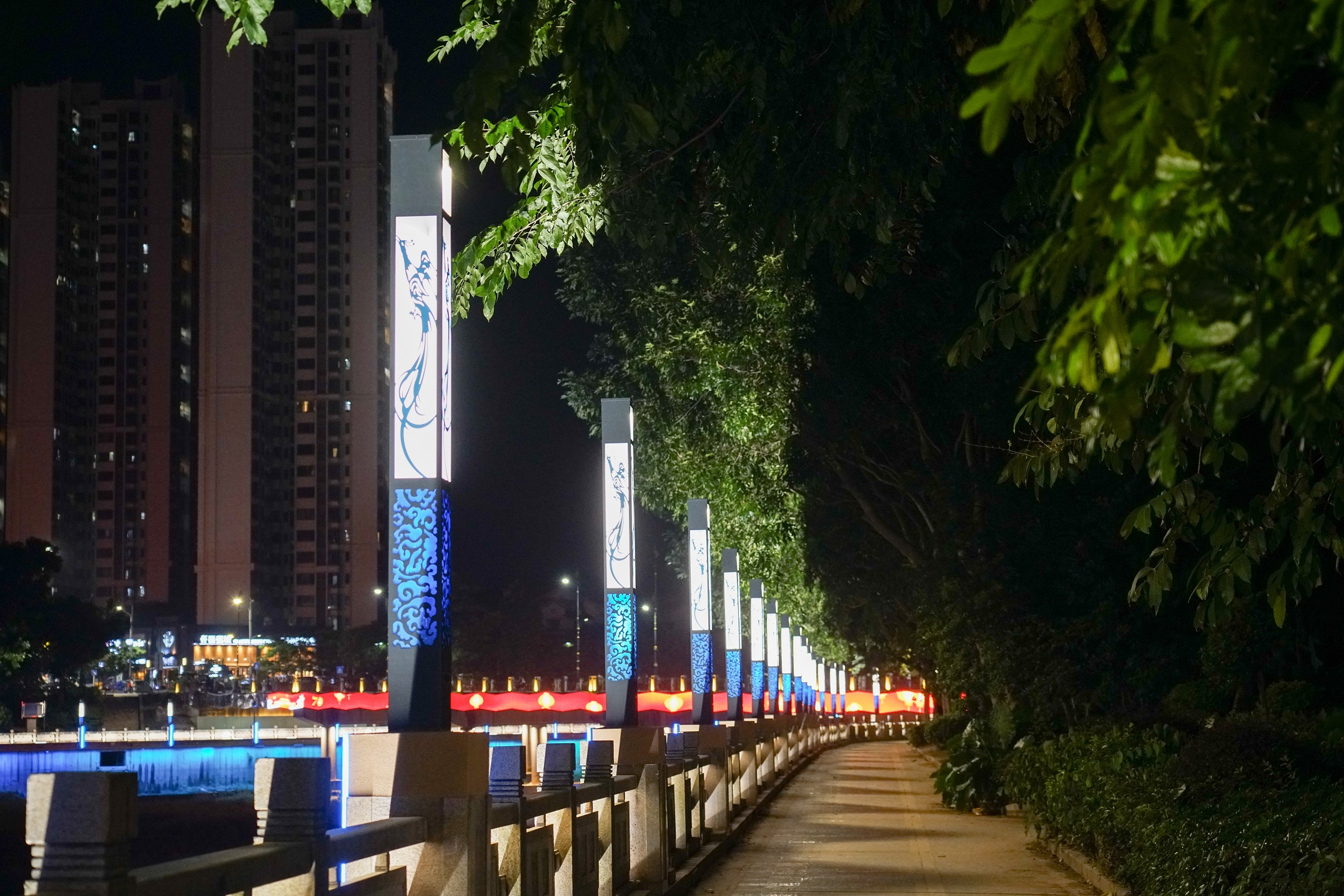 沿河公園之外,石馬河兩岸步道也是鳳崗市民極為熱衷的休閑場所。為營造更好的燈光環境,洲明在石馬河中心段第二階段,也將對此處文創燈光進行精心打造。