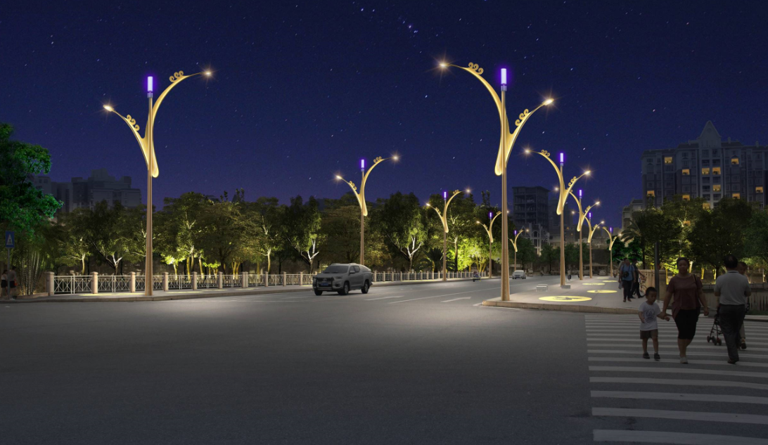 作為連接石馬河兩岸的紐帶,三橋承載著交通運輸重任,其中,以永盛北大橋人流、車流最大,永和橋、臥龍橋次之?;诖?,洲明為永盛北大橋專門打造的鳳凰造型多功能雙頭路燈,以及永和橋與臥龍橋分別安裝的鳳凰造型單頭路燈與定制鳳凰文化IP景觀燈,不僅能為過往車輛、行人提供溫和明亮的智慧照明,避免光污染的產生,更以充滿想象力的鳳凰造型,引領人們走入充滿現代美感與歷史底蘊的獨特空間、感受有鳳來儀的美妙景象。