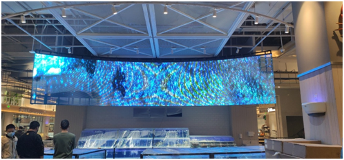 洲明LED透明屏以突出的顯示效果,結合各類生鮮產品宣傳視頻,讓顧客近距離感受大海里游來游去的魚、伸出蝦鰲的大龍蝦以及在深海游弋的帝王蟹……冷鮮冰爽之氣撲面而來。