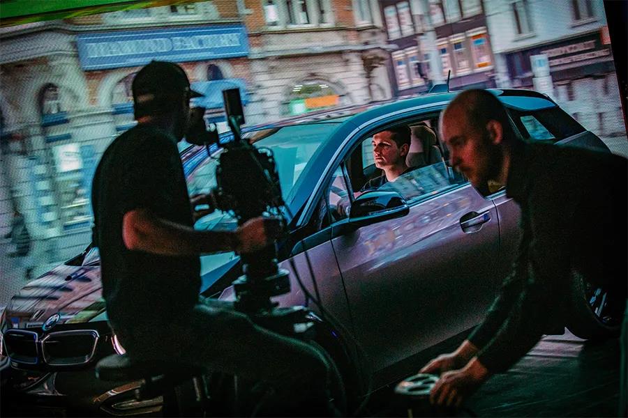 我們用了幾塊LED屏幕來模擬真實的環(huán)境,將汽車放置其中進行拍攝」