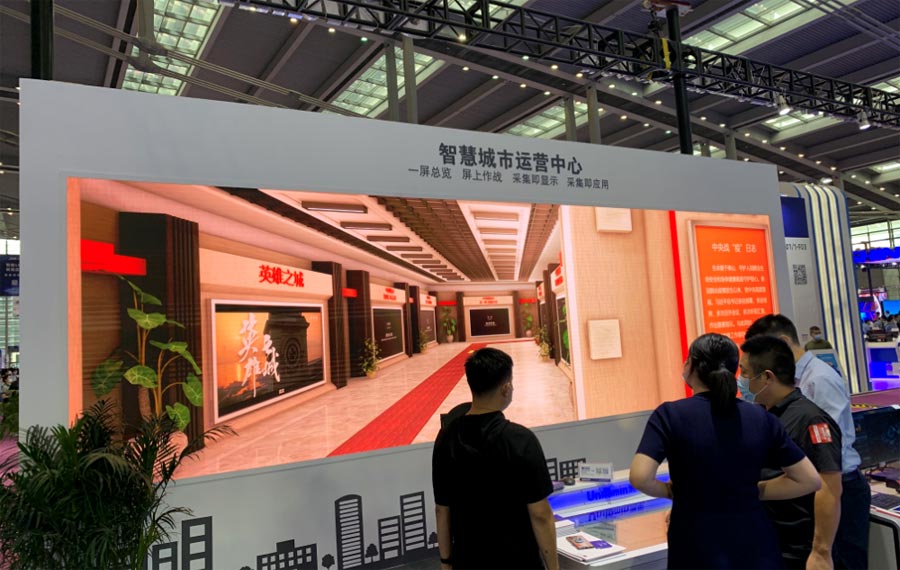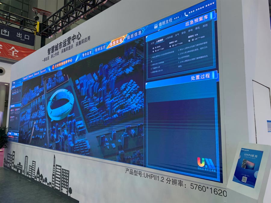 圍繞“桿屏物聯,端云鏈接”的主題,洲明展位設置了行業指揮中心場景,現場為觀眾演示洲明指揮中心解決方案在防疫、應急、交通、公安、人防、智慧城市等領域的技術優勢與成熟應用,完美詮釋了智慧城市運營中心一屏總覽、屏上作戰的強大功能。