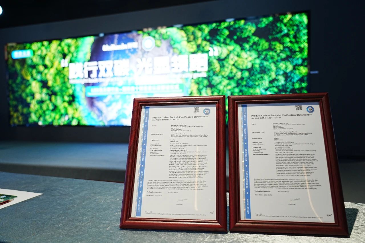 2023年4月24日,LED顯示屏行業(yè)—國際首個碳足跡認(rèn)證頒證儀式以“踐行雙碳,光顯領(lǐng)跑”為主題在洲明集團總部召開。TUV南德意志集團(以下簡稱"TUV南德")為洲明頒發(fā)碳足跡核查聲明,洲明成為行業(yè)首家、也是國際上首個取得TUV南德LED顯示屏碳標(biāo)簽的企業(yè)。