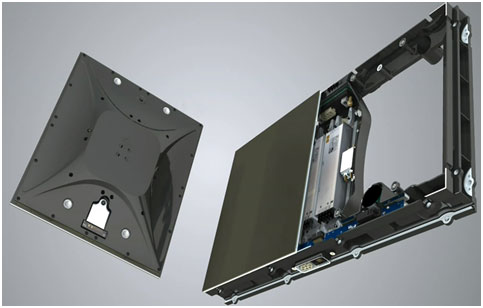 二、首個攻克模組箱體分離式結構技術,實現自動接線、智能調節、高效散熱箱體和模組采用分離式結構,現場安裝時,先安裝箱體,自動熱拔插式安全接線,再通過箱體的六方位拼接系統拼成整屏畫面,調節屏體拼接精度小于等于0.1mm,再安裝模組。箱體與模組分離式結構,電源貼在后腔結構上,熱量從箱體后腔延伸,實現高效散熱。