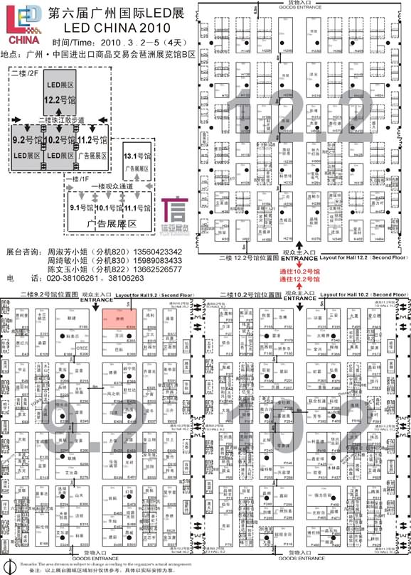 2010年3月2-5日,洲明科技將應邀參加第六屆廣州國際LED展(地點:廣州琶洲展館;展位:2樓9.2號館 展位號:E339),將展出五款LED全彩系列顯示屏:P16戶外固定安裝全彩屏系列、P8戶外租賃全彩屏系列、P4戶內固定安裝全彩屏系列、R4吊裝全彩屏系列、P8小廣告全彩屏系列;LED照明產品包括多種新研發(fā)的LED照明燈具,如:LED節(jié)能路燈、大功率LED洗墻燈、LED投光燈、LED傳媒燈、LED射燈等。敬請留意觀展。