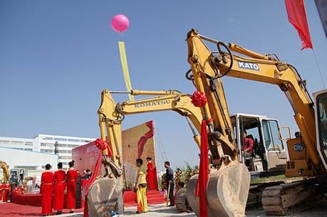 坪山新區(qū)黨工委書記楊緒松、新區(qū)管委會副主任張淶臨和洲明董事長林洺鋒等為研發(fā)生產(chǎn)基地奠基培土 |