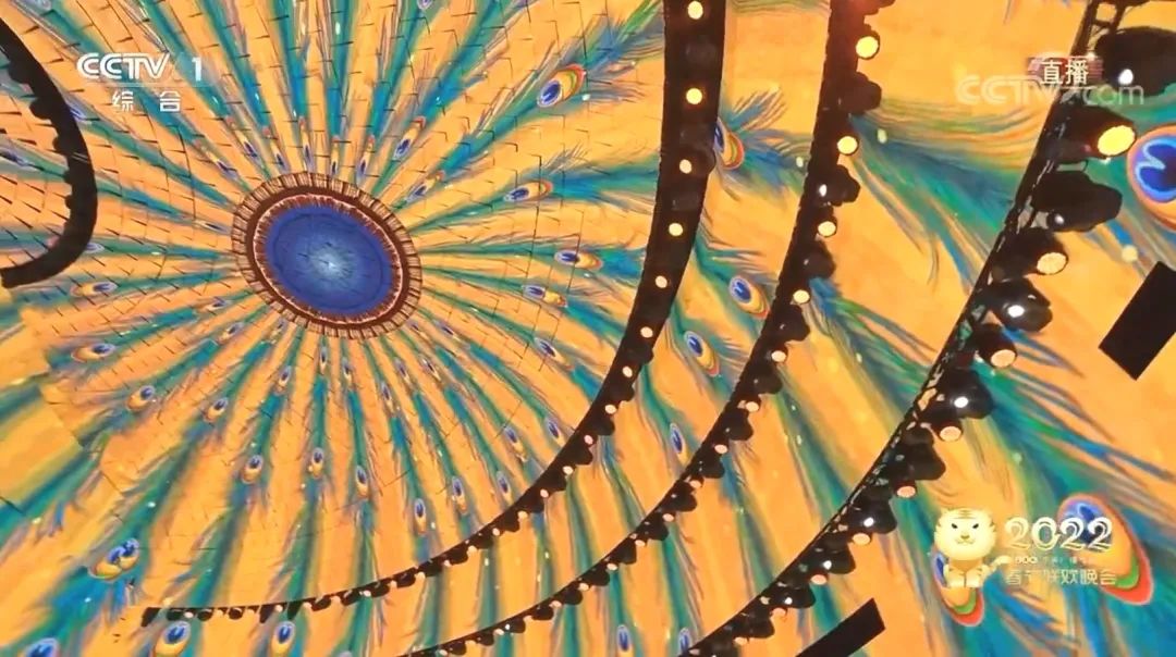 任嘉倫、王源、宋茜、吉克雋逸四人演唱的《真愛起舞》也是一絕。俊男美女、歌聲悠揚之外,更有中國雜技團跨刀助陣,配合洲明原創的沉浸式舞美背景——孔雀開屏的絢麗景象,愈發彰顯科技與藝術的交融之美,明星們的深情演繹與洲明舞臺設計相得益彰,聯袂奉獻了一出精彩絕倫的好戲。